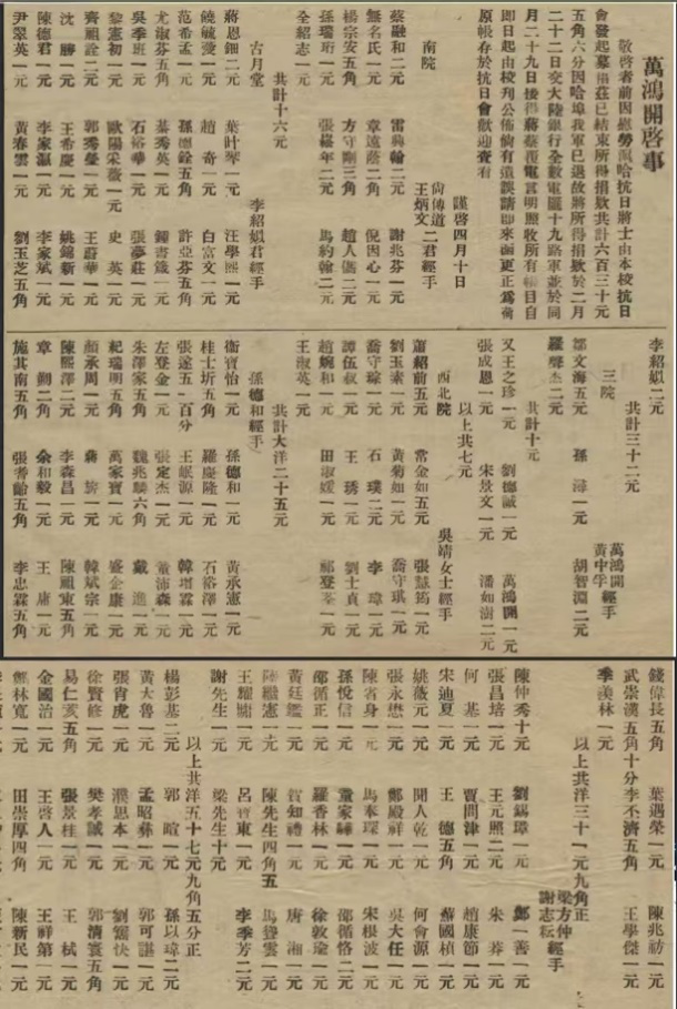1932年3月,钱伟长为抗日捐款。