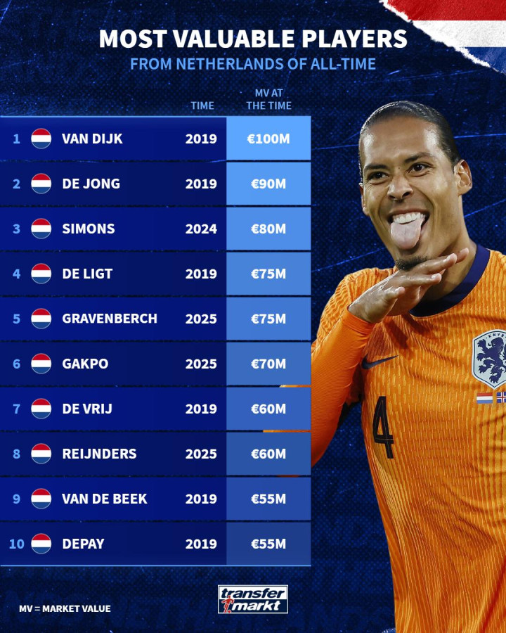 荷兰历史身价榜: